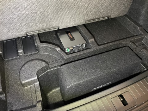 Een subwooferbehuizing is onder de dubbele bodem geplaatst voor een warme en diepe basweergave. In de gesloten subwooferbehuizing is een 25cm gemonteerd. Voor dynamiek en power is er een meerkanaals versterker met DSP gemonteerd.