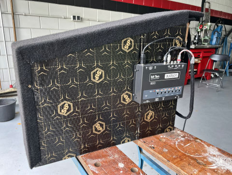 De op maat vervaardigde subwooferbehuizing.