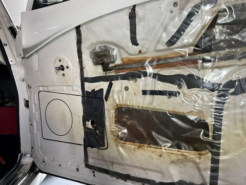 Op de plaats van de originele opbergvakken in de portieren zijn de midbas speakers en de softdome tweeters geplaatst. Middels op maat vervaardigde speakerrooster zijn de speakers aan het zicht onttrokken. Speciale dempingsmatten zijn aangebracht om de audioweergave van de speakers te optimaliseren.