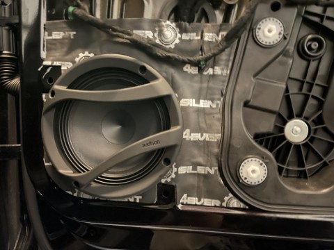 In de beide voorportieren zijn 16.5cm midbas speakers gemonteerd. Voordat de midbas speakers gemonteerd worden zijn er speciaal ontwikkelde dempingmatten aangebracht in de portieren.