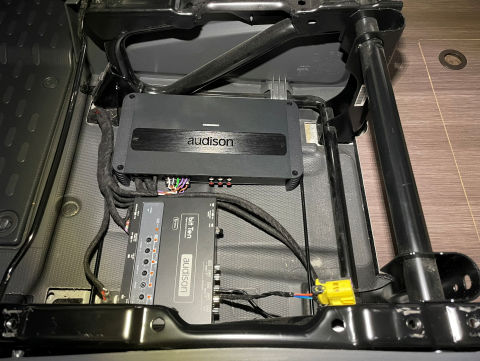 Audison subwooferbehuizing onzichtbaar, wel voelbaar.